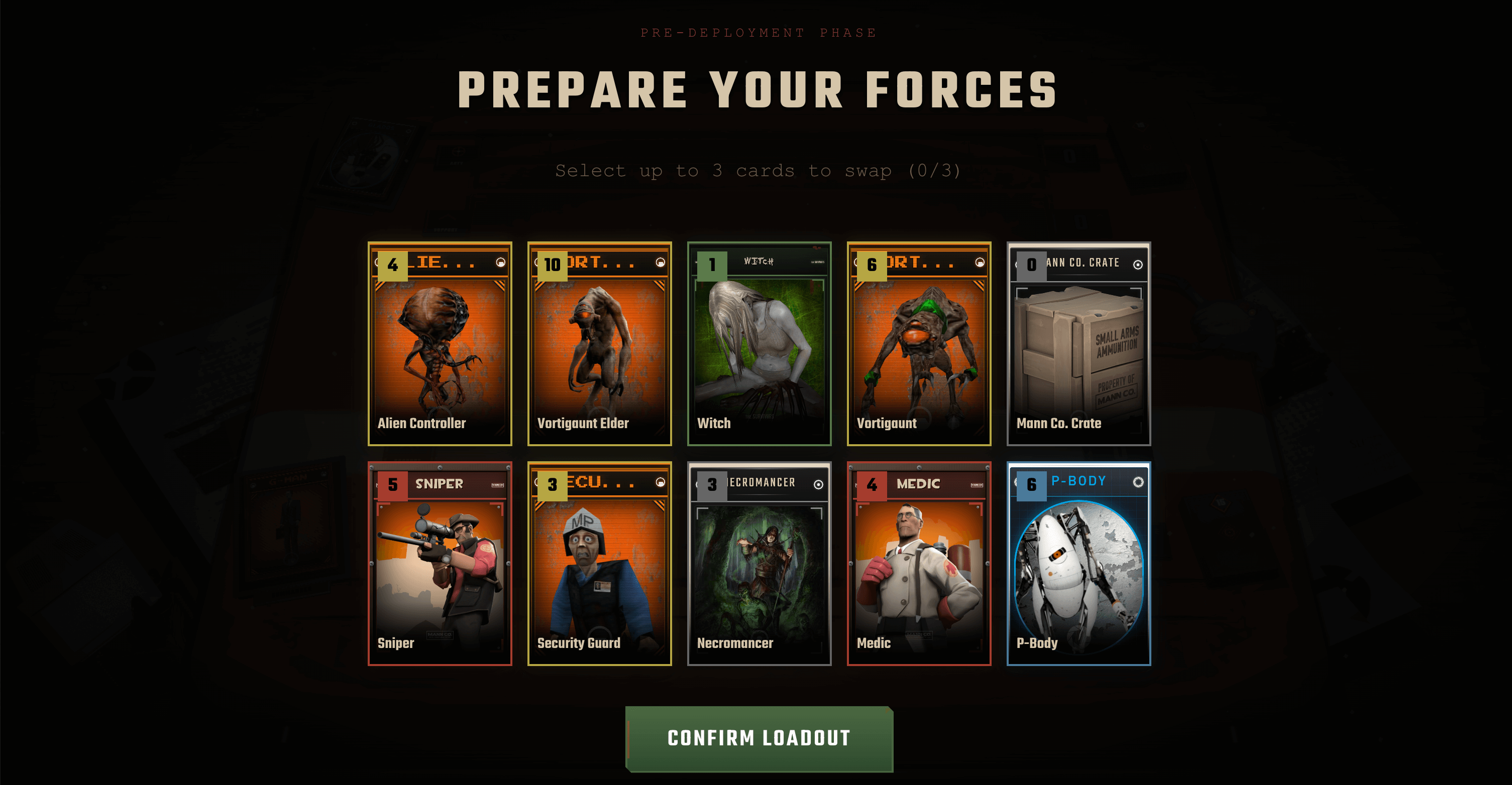 Gwent + Statis inspired deck game contains popular valve games (Left 4 dead, portal, team-fortress 2, half-life)